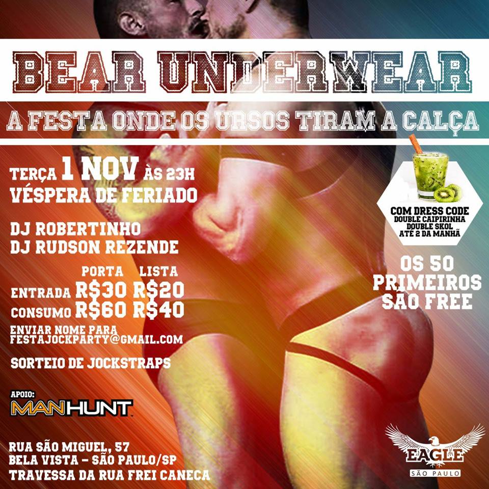 Festa com apoio do Manhunt na qual os ursos tiram a calça.