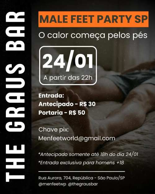 Clube de sexo recebe festa para praticantes de adoração de pés masculinos.