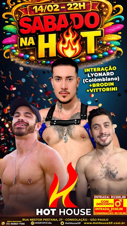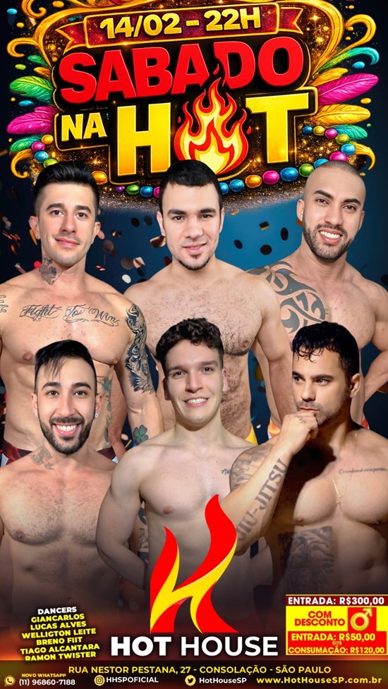 Noite tem striptease dos gostosões Giancarlos, Lucas Alves, Giancarlos, Wellington Leite, Breno Fit, Tiago Alcantara e Ramon Twister.