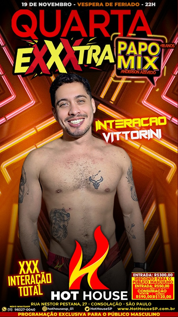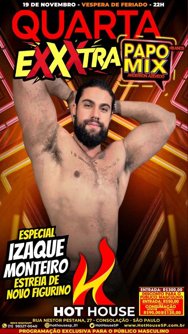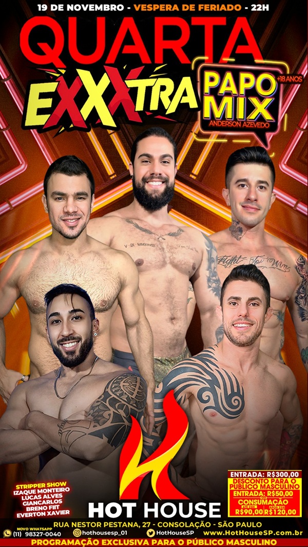Noite tem ainda os strippers Everton Xavier, Lucas Alves, Breno Fit e Giancarlos.