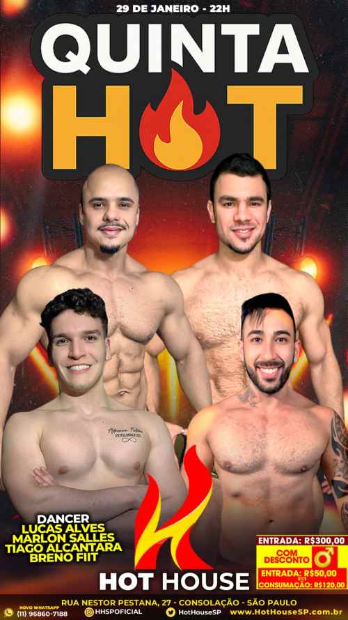 Os strippers Lucas Alves, Marlon Salles, Thiago Alcântara e Breno Fiit se apresentarão.