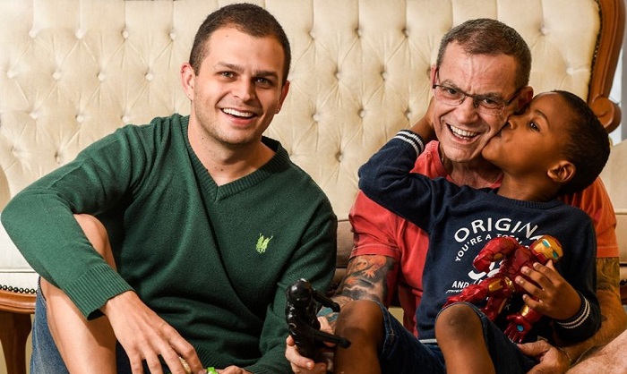 Senador gay Fabiano Contarato celebra adoção junto à família