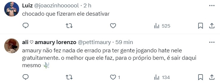 No X, as opiniões se dividem. Parte acha que ele fez bem em responder as críticas e também em desativar sua conta, já que é comum muitos usuários nessa rede se unirem na tentativa de cancelar alguém.