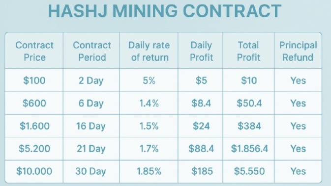 Ao contrário da mineração tradicional — que exige equipamentos caros e manutenção —, a Hashj permite obter recompensas de mineração em várias criptomoedas de maneira simples, segura e transparente.