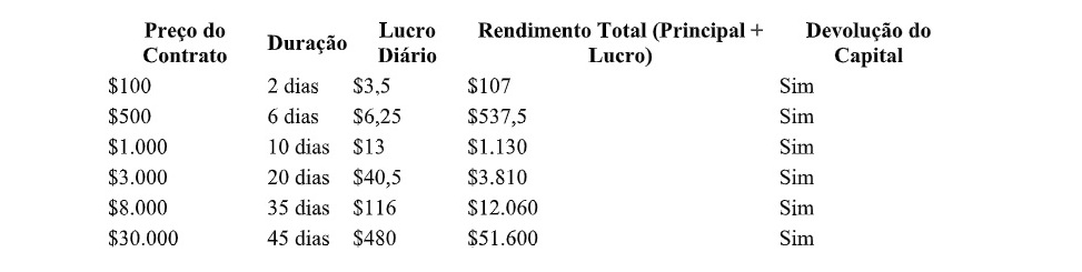 De acordo com a plataforma, sob as condições certas de contrato e de mercado, alguns usuários conseguem obter lucros de até US$ 90.000 por ciclo, o que torna o serviço uma escolha popular entre investidores que buscam “baixo custo de entrada e fluxo de caixa previsível.”
